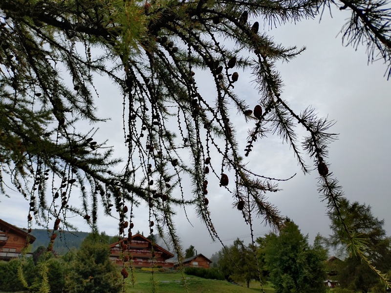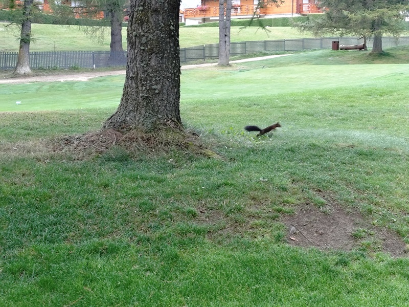コース脇にはスイスらしい建物の高級別荘が建ち並び、高原リゾート気分満点なので妻も楽しそうです。