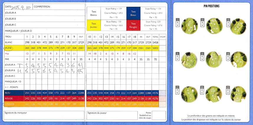 この後にいよいよ我々もスタート、ティーは5つあり私は2501mのイエローで妻は21138mのレッドから。